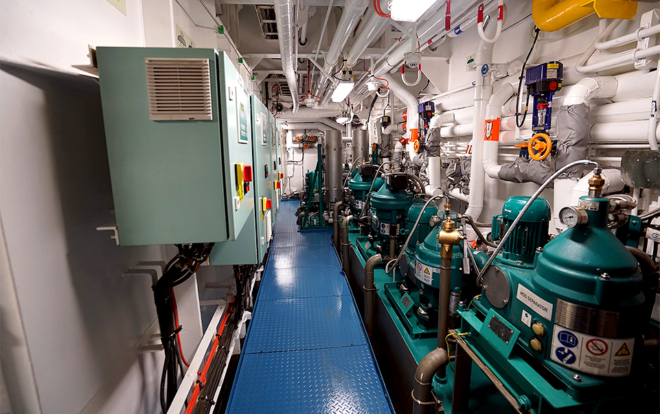 - Shaft generator: Permanent Magnet Shaft Generator with Variable Frequency Drive to allow running the Engine/Propeller in Combinator mode for optimum efficiency. Rated output shaft generator PTO 780 kW / PTI 1,000 kW.